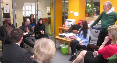 Hilton von Herbert, HCLC's Senior Immigration Caseworker (pictured above with Andrew and Law Society colleagues Rebecca and Barbara) told Andrew that he had expected there to be a decrease in immigration cases after LASPO came in, due to the Act removing many areas of immigration from the scope of legal aid. However, what had in fact happened was that immigration solicitors in private practice were redirecting people to HCLC who couldn't afford to pay for immigration advice privately.